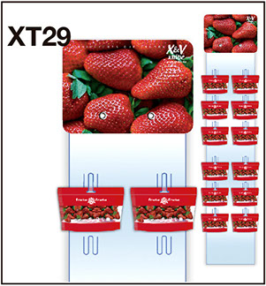 12 ganchos divididos en secciones para exhibir variedad de productos con una misma presentación.